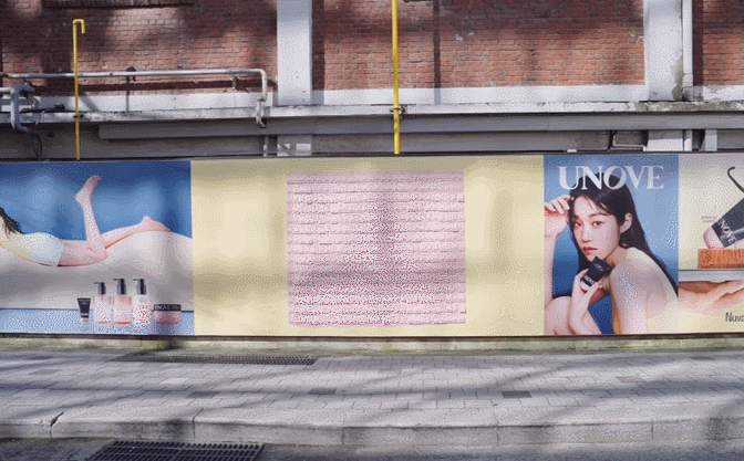 오프라인 마케팅하면, 가장 대표적으로 떠오르는 것이 ‘팝업스토어’와 ‘옥외광고’일 겁니다. 이 두 가지를 결합한 신선한 형태의 마케팅을 발견해 소개해 드려요. 바로 뷰티 브랜드 ‘어노브’가 진행했던 ‘필 오프 이벤트벽면에 붙은 브랜드 제품, 샘플, 굿즈 등을 소비자가 뜯어가는 형식의 이벤트’입니다. 어노브는 성수 유명 카페 ‘쎈느’ 건너편에 위치한 외벽 ‘그레이트 월’에 자사 옥외광고를 걸어두었는데요. 눈여겨볼 점은 한 벽면에