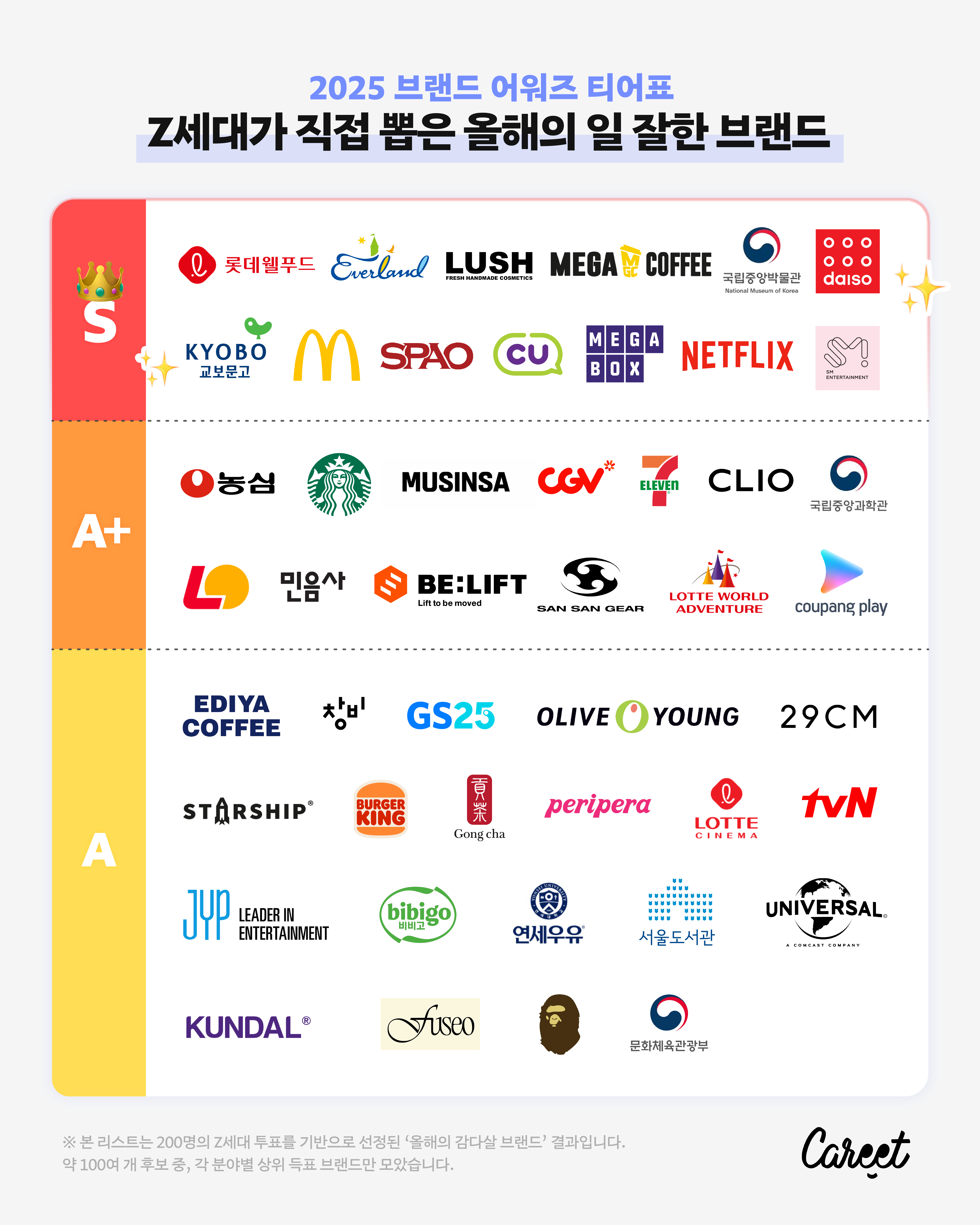 과연 Z세대가 뽑은 ‘올해 가장 일 잘한 브랜드’는 어디였을까요? 캐릿이 Z세대 200명에게 직접 투표를 받아보았습니다. 브랜드 후보는 총 100여 개였으며, 13개 분야에서 상위 득표를 얻은 브랜드 46곳을 ‘티어표’로 정리했어요. 본문에서는 분야별 1~3위 브랜드의 주요 마케팅 사례를 보실 수 있습니다. Z세대의 솔직한 응답도 함께 참고해 보세요!