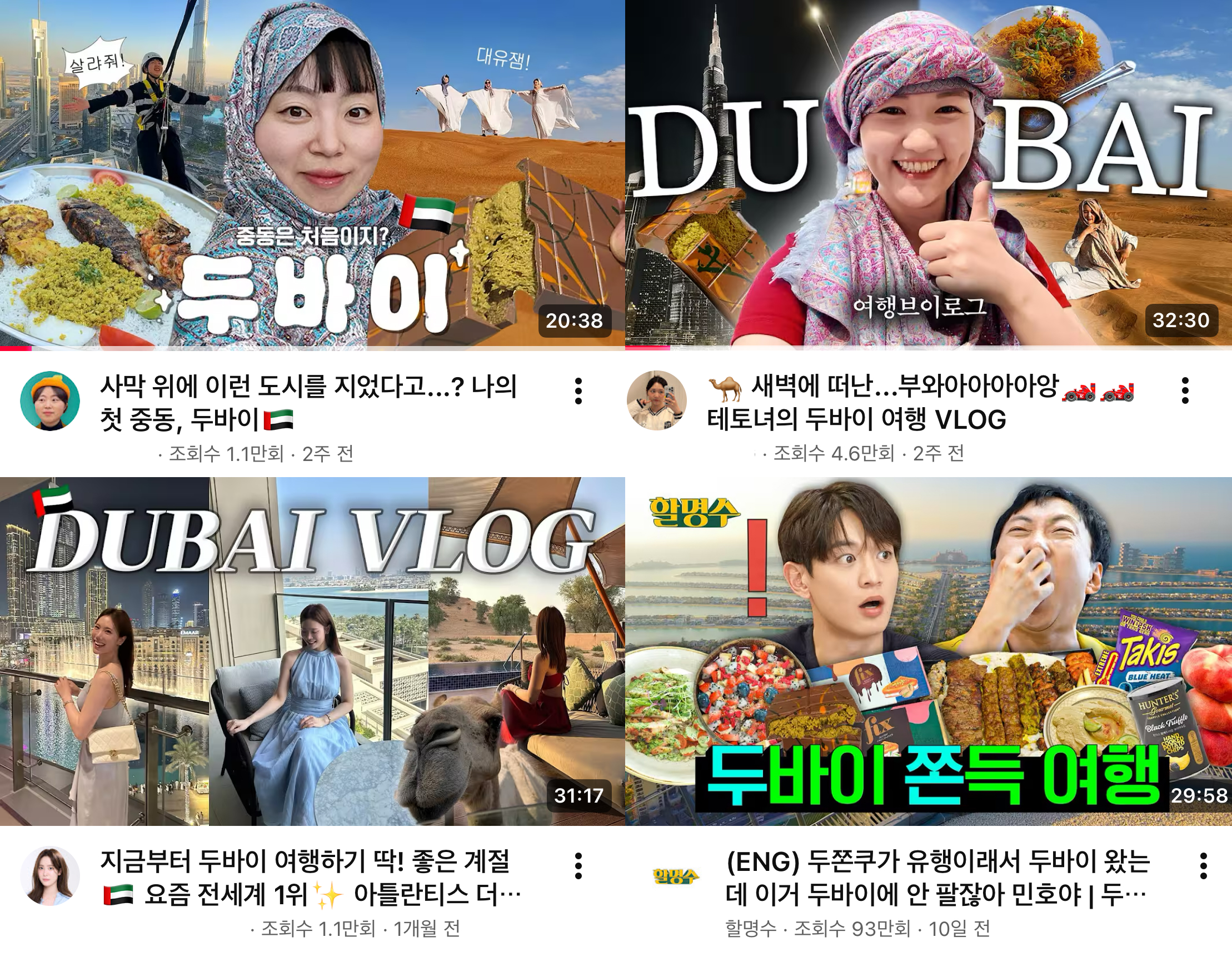 유튜브 ‘두바이 여행’ 검색 결과아이템: 두바이 여행