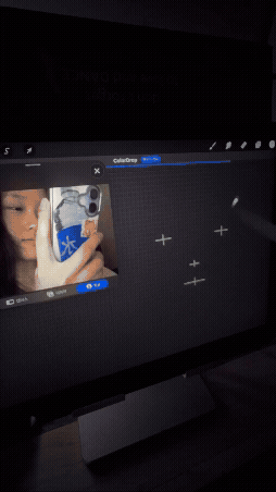 ✔ 프로크리에이트에는 ‘레퍼런스’라는 기능이 있는데, 아이패드 정면 카메라가 실시간으로 촬영하는 내 얼굴 영상을 화면 한쪽에 팝업창으로 띄울 수 있음.