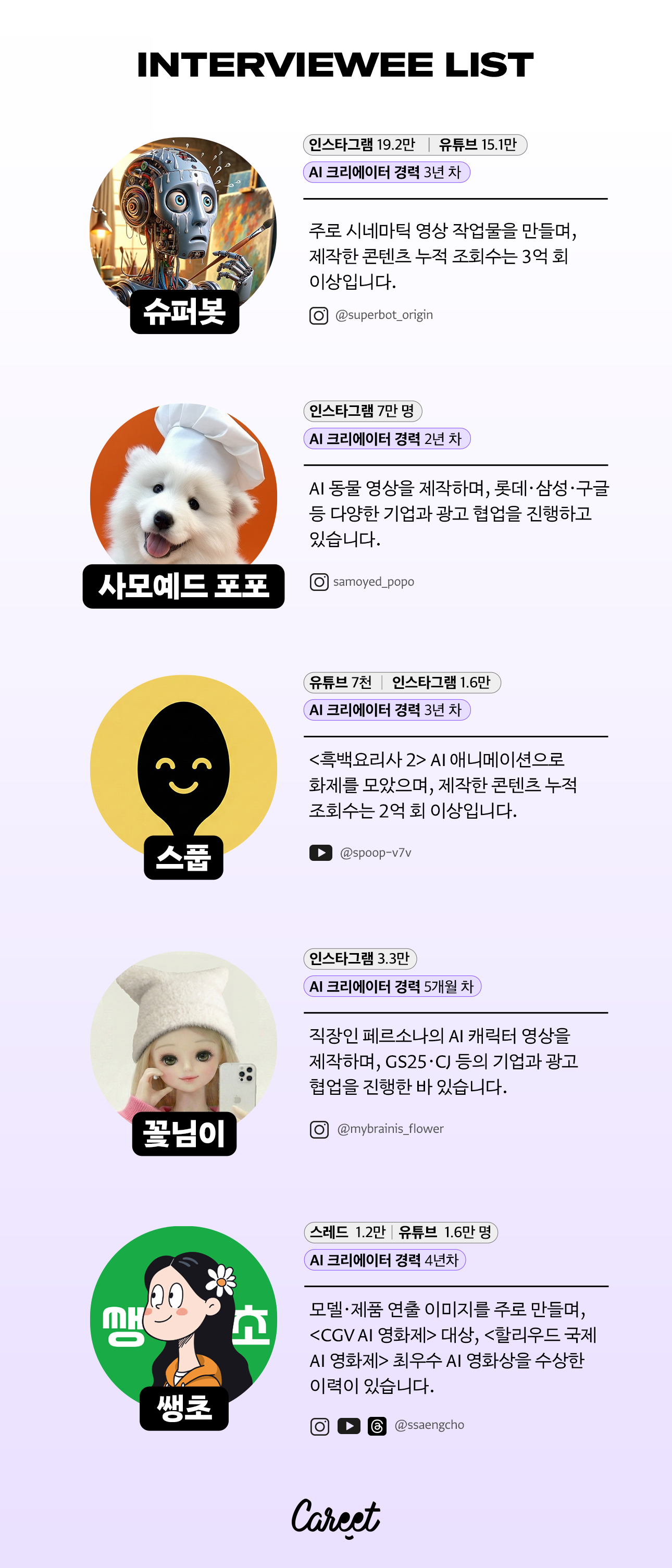 | 팔로워·경력 | 7천(유튜브), 1.6만(인스타그램) / 3년 차 |