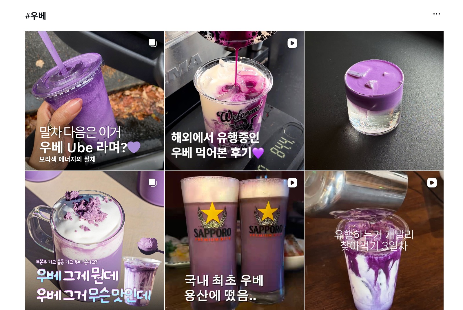 인스타그램 ‘우베’ 검색 결과소비자들이 인스타그램 등 SNS를 통해 해외 트렌드를 쉽게 접하게 되면서, 해외 트렌드가 국내 시장에 도입되는 시점도 점점 당겨지고 있습니다. 1~2주 전쯤 국내에 알려지기 시작한 우베 관련 메뉴가 벌써 우리나라 식음료 시장에 등장한 것처럼요. 그 말인즉, 이미 인스타그램에서 보이기 시작한 해외 트렌드는 브랜드가 활용하기에 늦은 트렌드라는 뜻이기도 합니다.