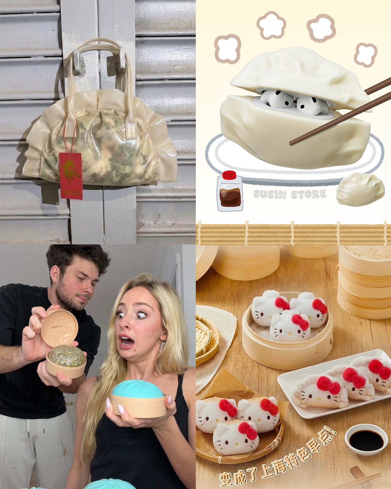 - 먼저 실제 만두 모양을 구현한 제품들이 인기를 얻고 있음. 일례로, 해외 브랜드 ‘에세네스 월드와이드’가 선보인 ‘덤플링 백’은 만두와 똑같이 생긴 가방으로, 조회수 1,029만 회를 기록하며 화제가 됨. 영상에서는 가방 내부에 바이럴용으로 실제 만두를 넣어 더욱 눈길을 끌었음. 국내 브랜드 ‘수심’ 역시 만두 모양으로 생긴 에어팟 케이스를 출시해 관심을 받았음.