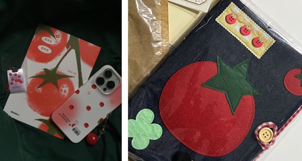 (좌) 토마토 컵라면 도서와 토마토 폰케이스 (우) 다이소 토마토 북커버여러분, 혹시 지난해 여름 메가 트렌드로 떠올랐던 ‘토마토’를 기억하시나요? 토마토는 하나의 비주얼 아이콘으로 자리 잡으며, 굿즈를 넘어 패션·뷰티·도서까지 다양한 분야에 영향을 끼쳤습니다. 키링, 잠옷, 네일아트 등 새롭게 출시되는 아이템마다 토마토 디자인이 빠지지 않았고요. 심지어 한 서점은 토마토를 주제로 한 도서 큐레이션을 내놓아 SNS에서 화제를 모으기도 했습니다. 그런가 하면, 차정은 시인의 시집 ‘토마토 컵라면’ 역시 내용뿐 아니라 토마토 일러스트가 그려진 표지로 주목받았는데요. 해당 디자인을 활용한 폰케이스, 티셔츠 등 2차 굿즈가 출시되며 관심을 끌었어요.