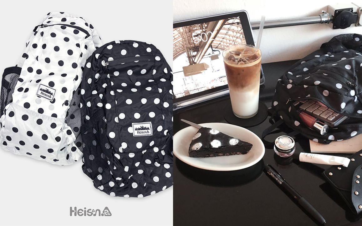 (좌) 요즘 유행하는 도트 무늬 가방 (우) 도트 무늬 브라우니로 유명한 카페 비바보사출처 하이산 홈페이지, 인스타그램(@o.0afe)