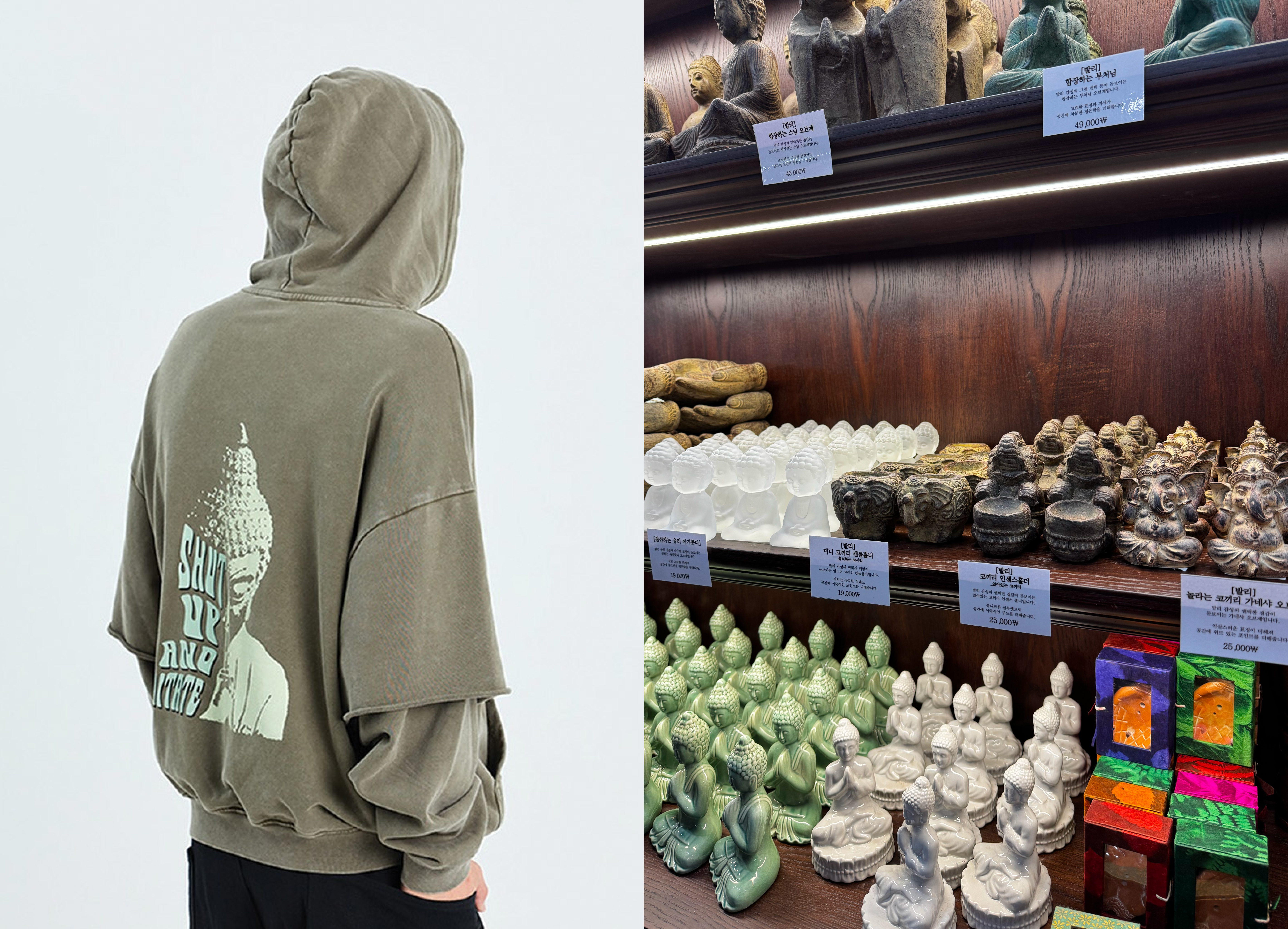✔ 부처·연꽃 등 불교 관련 오브제를 현대적으로 재해석한 디자인이 특징. 제품 중엔 스트릿 브랜드 감성의 티셔츠·맨투맨이 특히 인기를 끌고 있음.