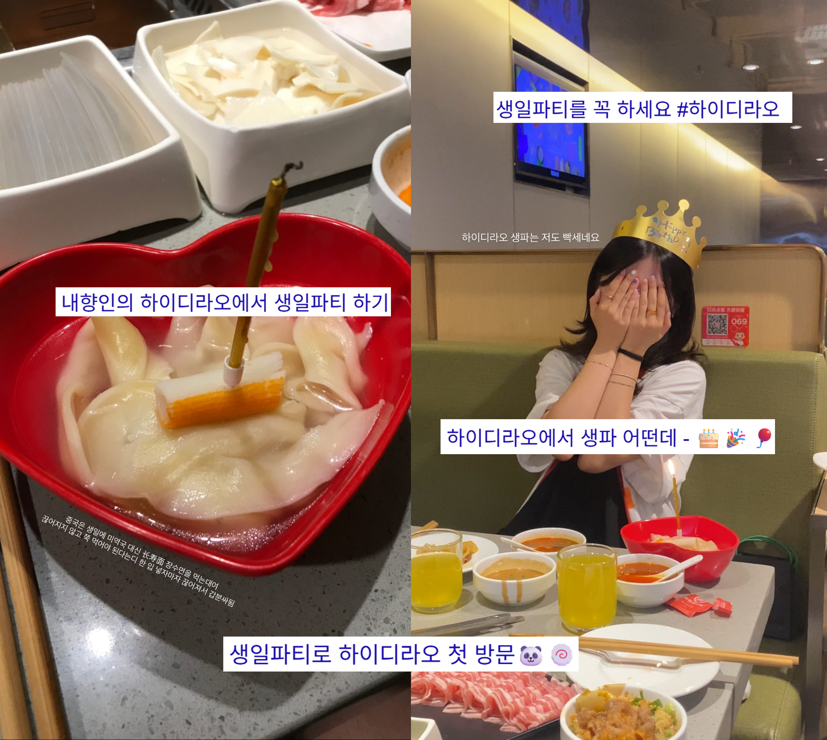 (좌) 하이디라오에서 제공하는 장수면 (우) 하이디라오 생일 파티출처 인터뷰이 제공