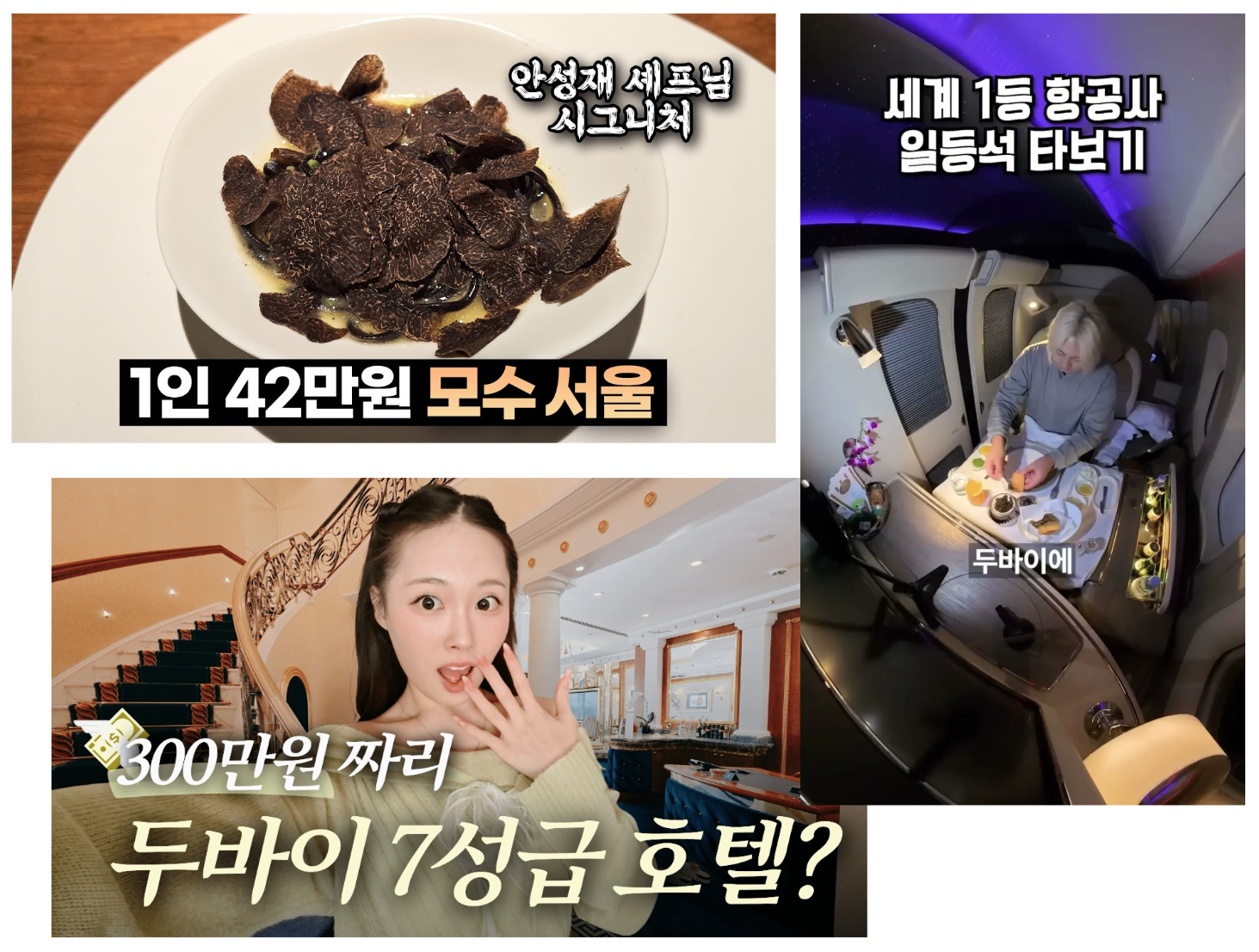 출처 유튜브 채널 ‘더들리’, ‘지원’, ‘독고독’파인다이닝·오마카세 리뷰부터 명품 하울, 퍼스트클래스 리뷰, 5성급 럭셔리 호텔 리뷰까지. 유튜브와 SNS를 통해 프리미엄 문화를 손쉽게 접할 수 있는 시대입니다. 이러한 흐름은 코로나19 유행 시기를 기점으로 본격화됐습니다. ‘명품 붐’이 일면서 관련 콘텐츠가 우후죽순으로 쏟아져 나왔는데요. 당시 10대~20대였던 지금의 Z세대가 어린 시절부터 이처럼 하이엔드 라이프스타일을 다룬 콘텐츠를 보면서 프리미엄 문화에 조금씩 익숙해진 것으로 보입니다.