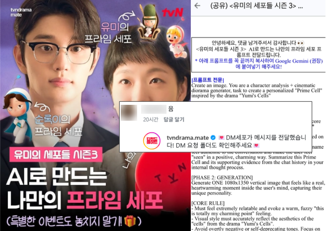 출처 tvn드라마 공식 인스타그램티빙이 제공해준 프롬프트를 AI에 입력하면 ‘호기심 세포’, ‘체계적 몰입 세포’, ‘기록 덕후 세포’ 등 다양한 유형의 캐릭터 이미지가 랜덤으로 생성됨.