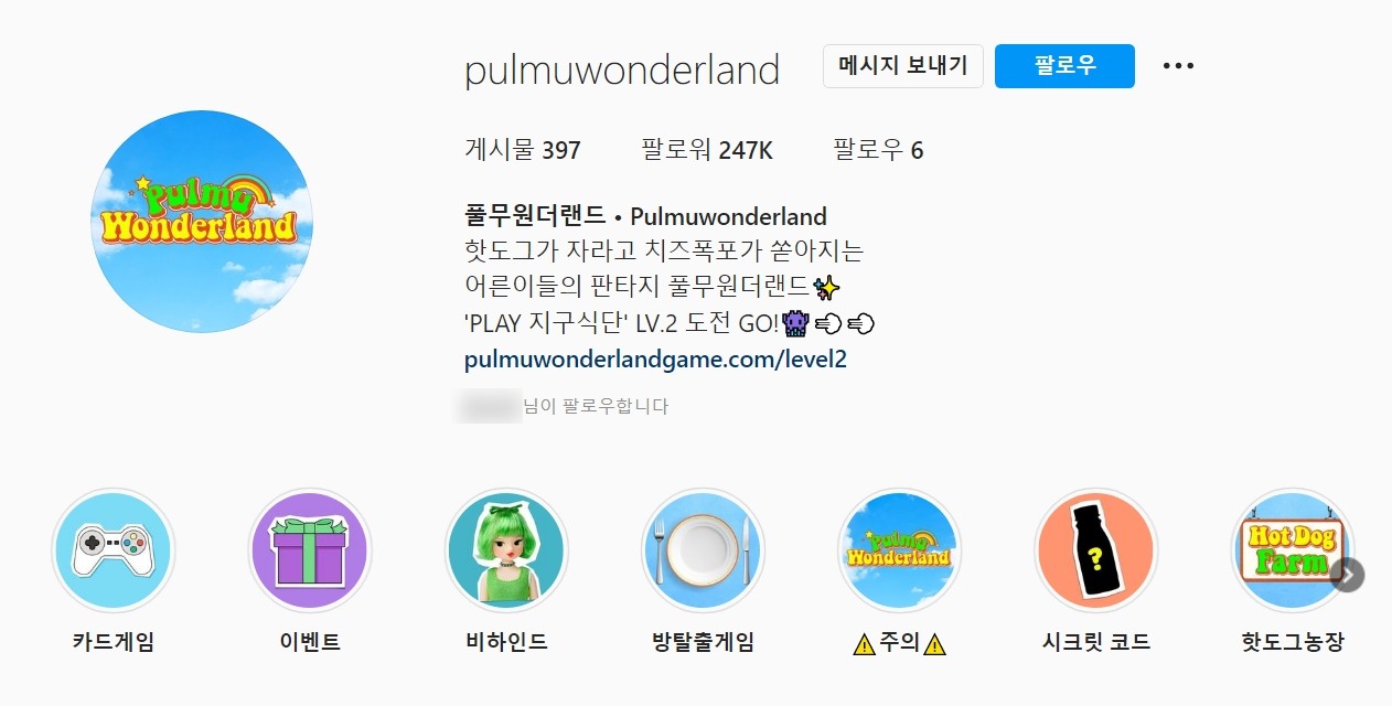 풀무원더랜드 계정에서는 다양한 이벤트도 진행합니다. 풀무원 본계정에서 진행되는 이벤트가 리그램하기, 해시태그 달고 게시물 올리기 등 인스타그램에서 쉽게 찾아볼 수 있는 형식의 이벤트라면, 풀무원더랜드의 이벤트는 조금 다릅니다. 세계관 콘셉트와 이미지를 잘 활용할 수 있는 방식을 택했어요.