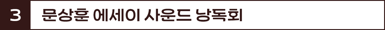 유행 지수 : 🥕🥕🥕✔ 문상훈의 에세이 책 ‘내가 한 말을 내가 오해하지 않기로 함’의 사운드 낭독회가 2월 17일부터 3월 3일까지 열릴 예정. ✔ 사운드 낭독회는 녹음된 목소리를 스피커로 감상하는 방식으로 진행됨. 책 녹음에는 수지, 장기하 등 9명의 가수·배우가 참여함. 특히 수지의 참여로 SNS에서 화제를 모음. ✔ 문상훈이 북토크를 진행하는 금요일 저녁 회차는 티켓팅 당일 매진됨.