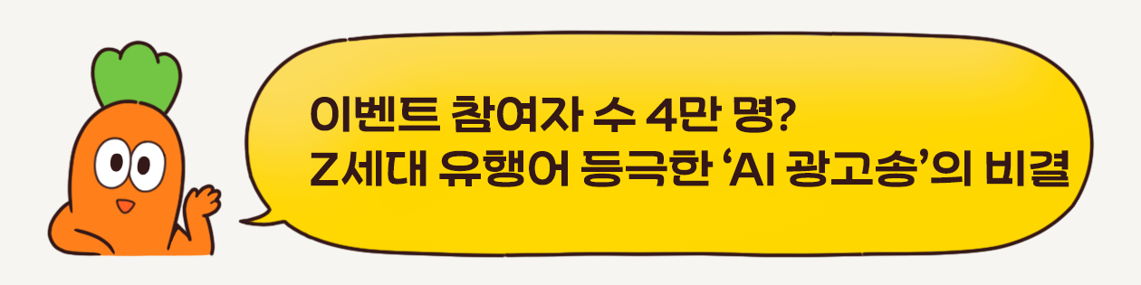🙄 Z세대의 반응이 좋았던 이유는?Z세대는 생성형 AI 기술을 활용해 음원, 영상 등 다양한 콘텐츠를 제작하는 데 익숙한 ‘ AI 크리에이터’예요. 일례로 최근 유튜브나 틱톡에선 좋아하는 가수나 스트리머의 목소리로 AI 커버곡을 만드는 것이 유행 중인데요. 딘이 부르는 뉴진스의 ‘하입 보이’, 백예린이 부르는 데이식스의 ‘예뻤어’ 등의 영상은 유튜브에서 수백만에서 수십만까지의 조회 수를 기록하기도 했습니다. 카스의 이번 이벤트는 AI 콘텐츠에 대한 수요를 파악하고, 전략적으로 누구나 AI 콘텐츠를 손쉽게 만들 수 있는 템플릿을 제공해 참여를 유도한 것이죠. |